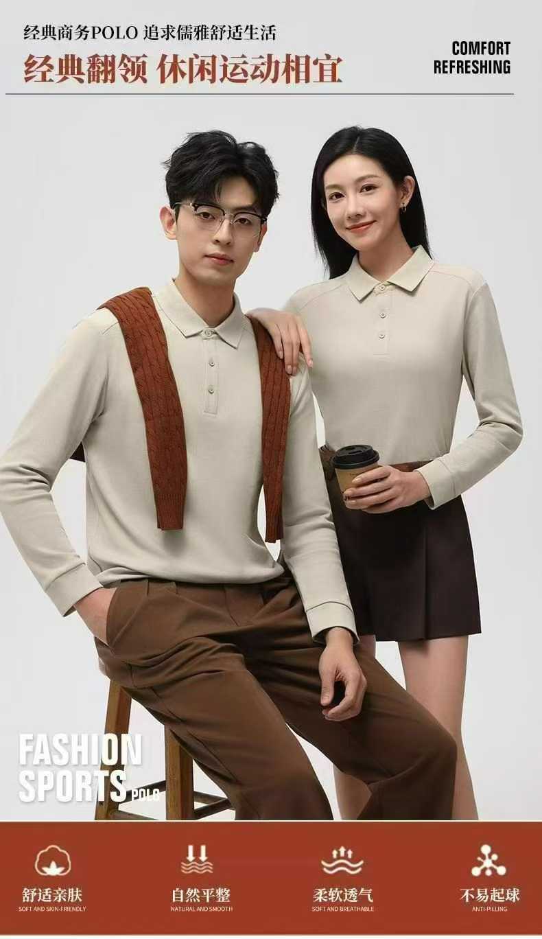 液氨长袖polo衫,以“高支棉+液氨工艺”为核心,适配多行业,兼顾专业与舒适。