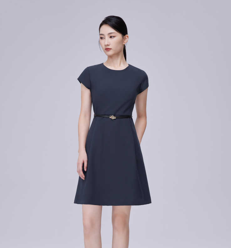 收腰A字摆:腰带收腰设计优化腰腹比例,A字裙摆自然散开,修饰胯部与腿部线条,对梨形、苹果形身材友好。