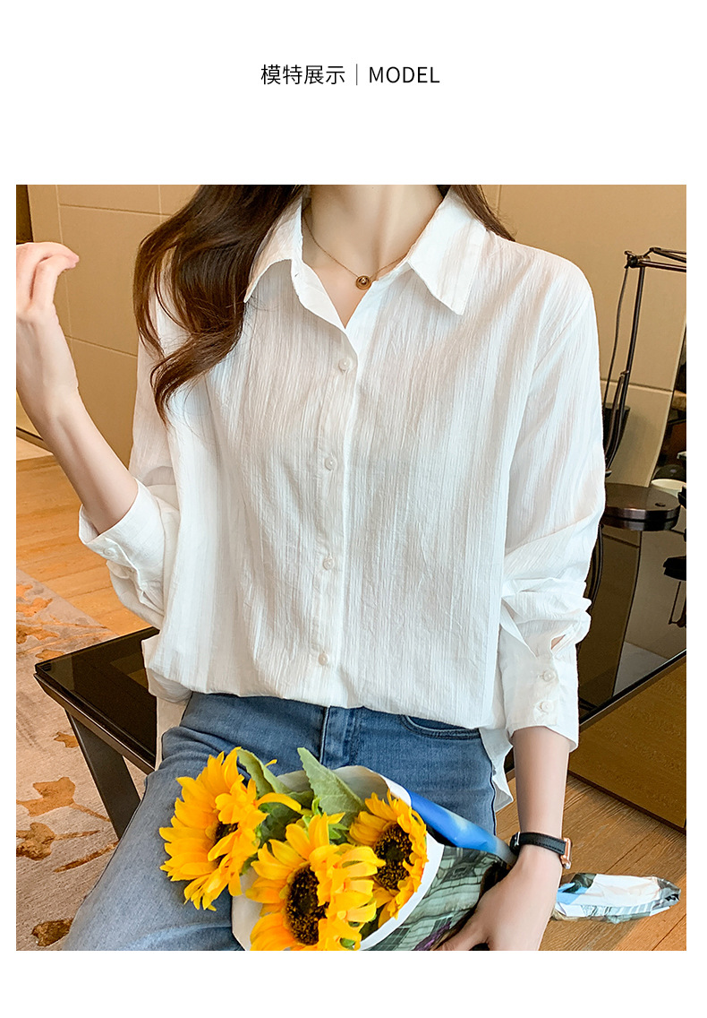 结构设计:衬衫前门襟加入衬条设计,提升挺括度与轮廓感;肩部采用水滴造型剪裁,线条流畅自然,适配不同肩型。
